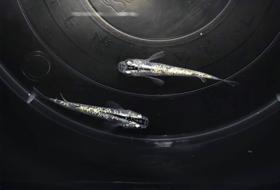 Medaka die in einem Lame Stamm mit anderer Grundfarbe vorkamen!