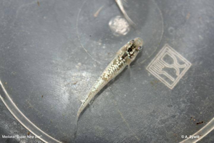 Medaka „Super new star“ ein Stamm mit sehr hohem Lame Schuppen Anteil